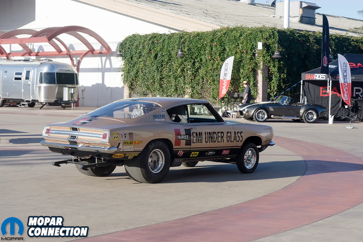 A similar engine setup was also used on the Barracudas that were sponsored by the Plymouth Dealer’s Association, which were raced by the late Tom “The Mongoose” McEwen, and “Fearless Fred” Goeske. The Hemi Under Glass was driven by “Wild Bill” Shrewsberry, who also drag raced one of the four 1966 Batmobiles built by the late car customizer, George Barris. Shrewsberry was also in attendance to answer questions to fans, who once saw this legendary car run. Mike also pointed out that the car he brought to the show was not the car that Bob Riggle crashed at Irwindale Raceway, with Jay Leno riding in the passenger’s seat. The car that Leno was riding in was in fact a brand new re-creation of the famed Hurst Hemi Under Glass.